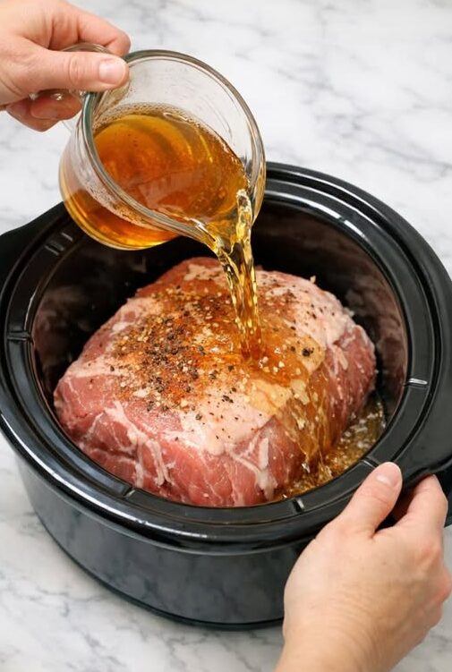 - Pour the mixture over the pork.