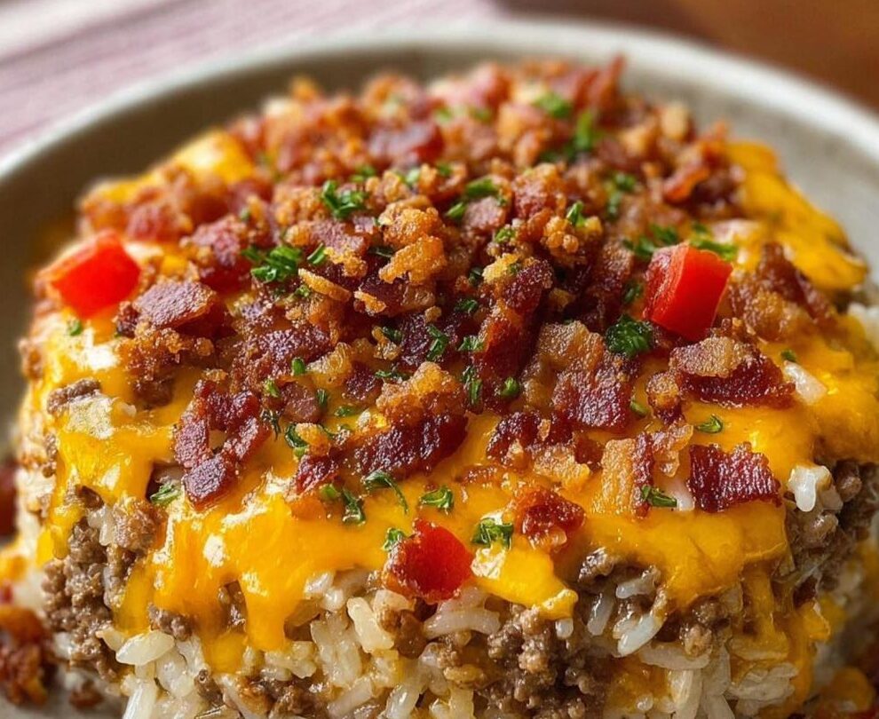 This dish is a modern American comfort-food mashup that evolved from skillet casseroles and hamburger rice meals commonly made in the 1970s–1990s. As one-pan cooking became popular again, home cooks began combining classic cheeseburger ingredients with rice to create an easy, crowd-pleasing alternative to traditional hamburgers.