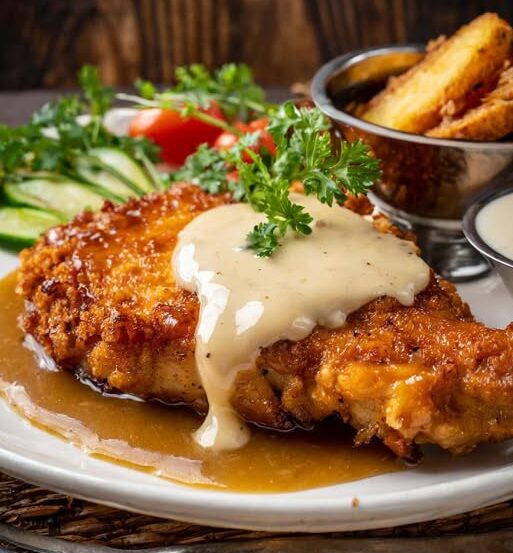 Chicken fried steak with gravy is a beloved comfort dish that showcases simple ingredients elevated through technique. It represents both Southern tradition and immigrant culinary influence, combining humble cuts of meat with bold, rich flavors.