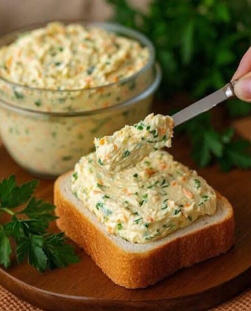 This spread is silky, lightly savory, and gently sweet from the carrots. The chicken adds body and richness, while the creamy base ties everything together into a smooth, spreadable texture.