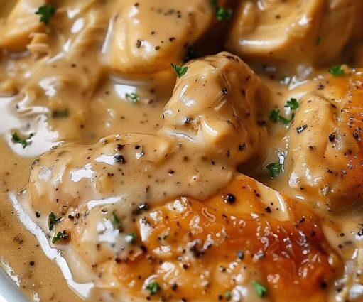 This dish delivers fork-tender chicken smothered in a velvety, savory gravy infused with herbs and rich creamy flavor. The slow cooking process creates depth and tenderness, while the addition of sour cream gives the gravy a silky, restaurant-quality finish. It’s hearty, cozy, and irresistibly satisfying.