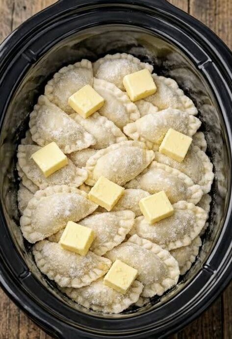 Cover and cook on low for 4–5 hours or on high for 2–3 hours until the pierogi are tender and the sauce is creamy.