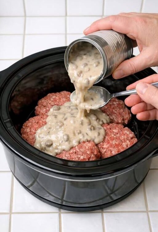 This rich and comforting slow cooker dish features seasoned ground beef patties smothered in a creamy mushroom sauce. It’s a simple, hearty meal that transforms basic ingredients into a flavorful, satisfying dinner with minimal preparation.