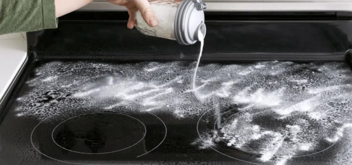 This cleaning method harnesses the gentle abrasiveness of baking soda and the degreasing power of dish soap, activated by vinegar to loosen stubborn residue. Soft friction lifts off cooked-on stains without scratching. When finished, the stovetop looks noticeably brighter and smoother, with a polished, like-new shine.