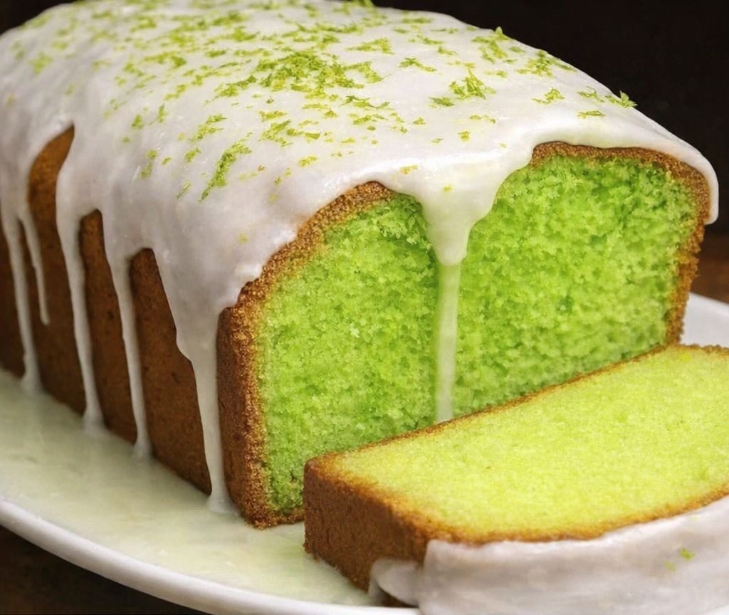 Description: The cake features a golden crust with a moist, buttery interior infused with tangy key lime. The citrus glaze adds a refreshing, sweet-tart finish that balances the richness of the pound cake.