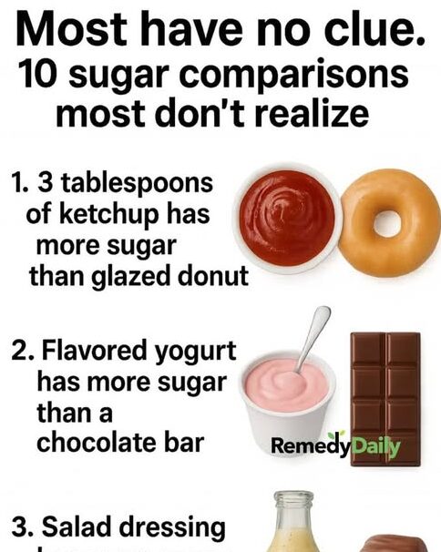 This list reveals how sugar hides in plain sight — turning everyday meals and drinks into stealthy dessert-level indulgences. Once you see the numbers, you’ll never look at “healthy” foods the same way again. Awareness is the first step to change.