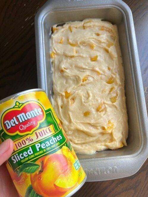 - Fold in the dry ingredients, then gently stir in the diced peaches.