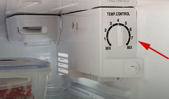 • It may be inside the fridge, along the sidewall, near the light, or near the temperature controls.