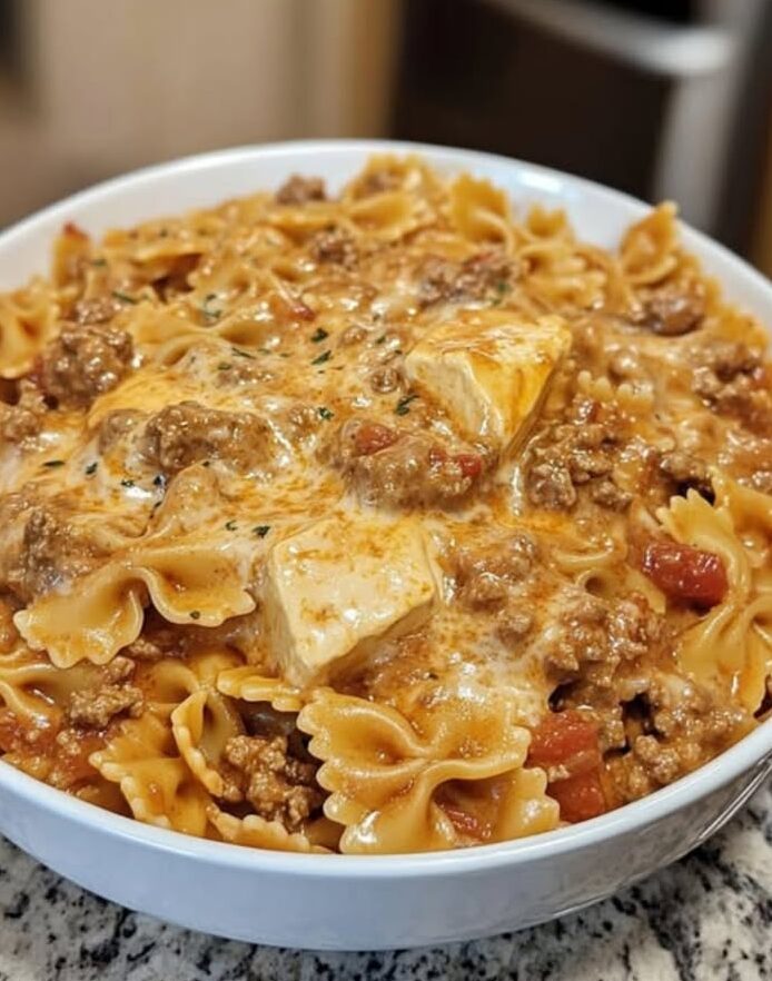 Velveeta Beef & Bowtie Pasta in Creamy Sauce is the kind of comforting, crowd-pleasing meal that saves busy weeknights and satisfies big appetites. With tender pasta, seasoned ground beef, and a luxuriously smooth cheese sauce, it’s rich, filling, and irresistibly cozy.